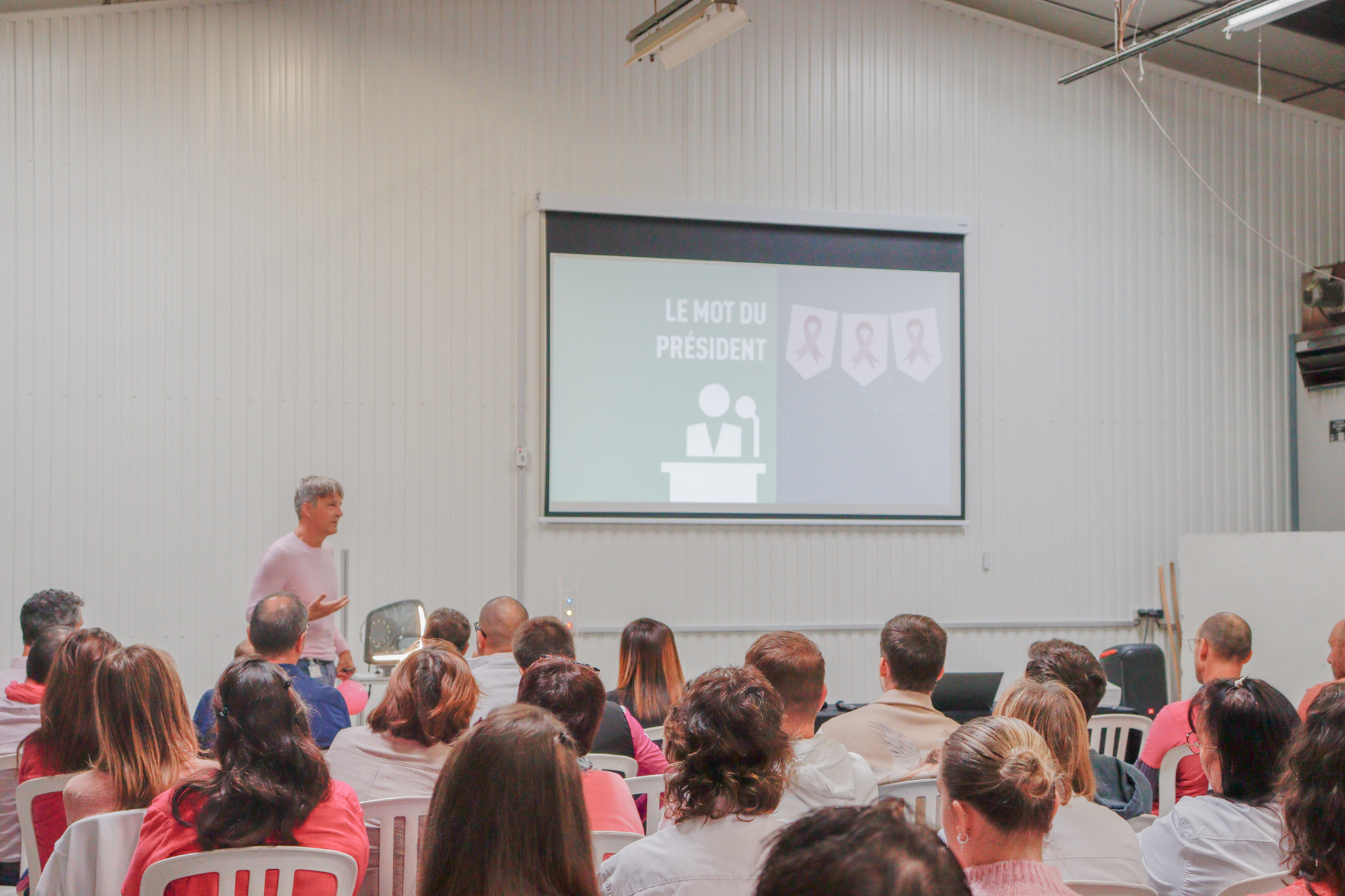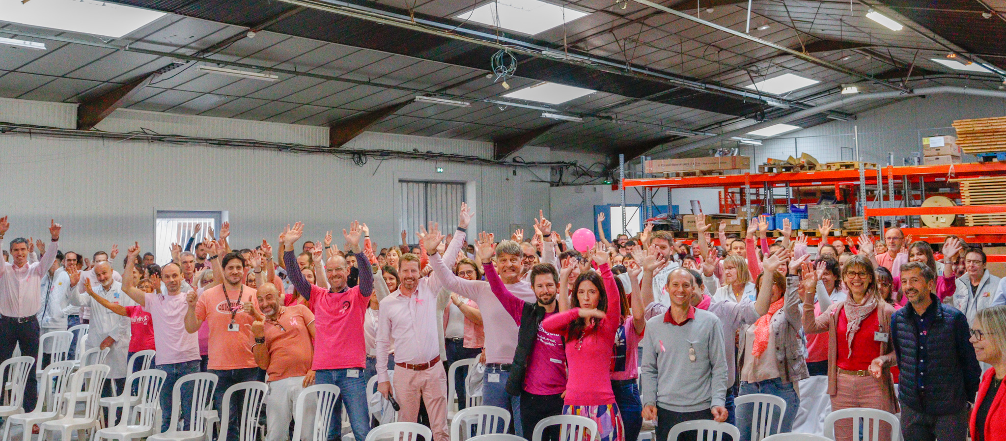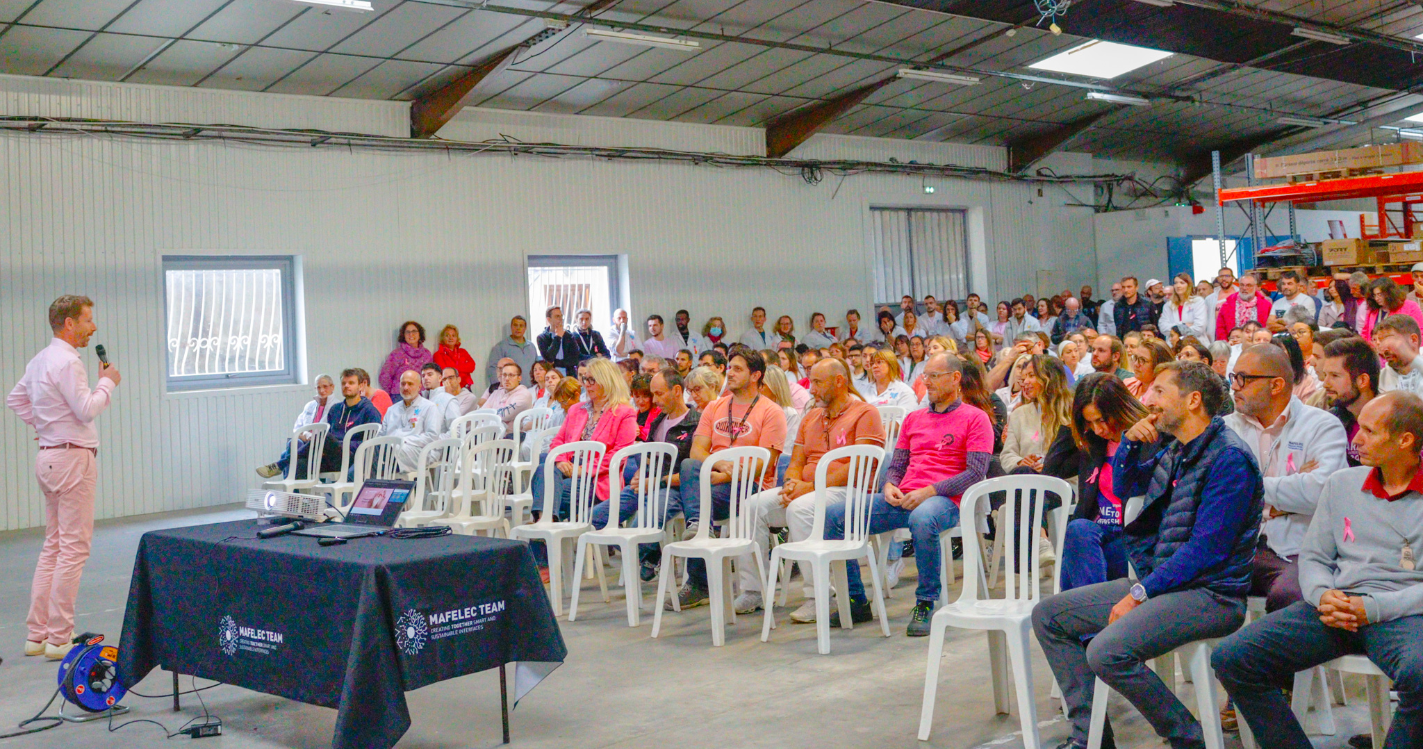 - 🎀 Höhepunkt dieses Monats der Solidarität war unsere große vierteljährliche Versammlung bei MAFELEC, an der mehr als 200 Mitarbeiter teilnahmen, die alle in Rosa gekleidet waren, um unsere Unterstützung lautstark zu bekunden.